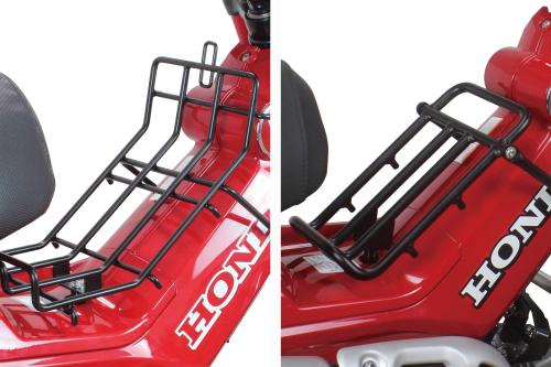 乗車時、シフトチェンジ、リアブレーキ時に影響を及ぼさない範囲で、キャリア面積を大きく確保しています。