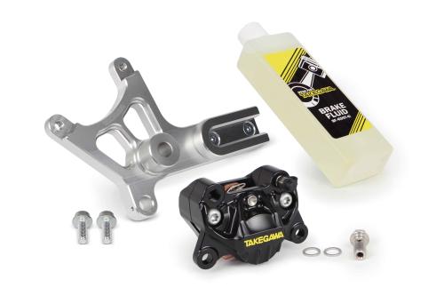 ■アルミビレット2POTキャリパーリアセットは、SP武川製アルミビレット2POTキャリパーにリアキャリパーブラケットキット、ブレーキフルード(200cc)が付属しています。