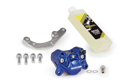■アルミビレット2POTキャリパーフロントセットは、SP武川製アルミビレット2POTキャリパーにフロントキャリパーブラケットキット、ブレーキフルード(200cc)が付属しています。