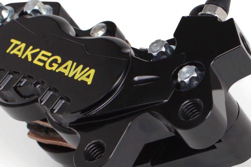 優れた制動力を発揮し、アルミ削り出しカラーアルマイトにより、デザイン性を高めた“アルミビレット4POTキャリパー”