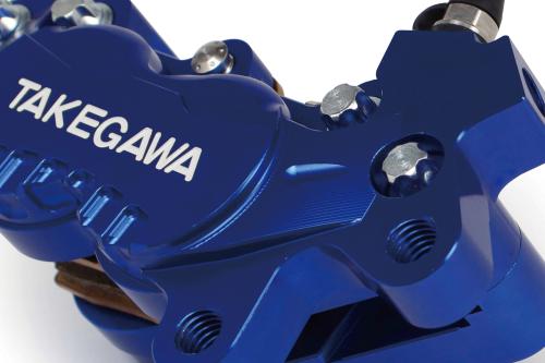 優れた制動力を発揮し、アルミ削り出しカラーアルマイトにより、デザイン性を高めた“アルミビレット4POTキャリパー”