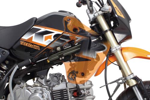 KSR110 SP武川製キャブレターキット装着車を対象とし、セットにはSP武川製ステアリングダンパー(旧型06-01-300/旧型06-01-0070/現行品06-01-0430)の取付けを可能とするステアリングダンパーステーキット付属。