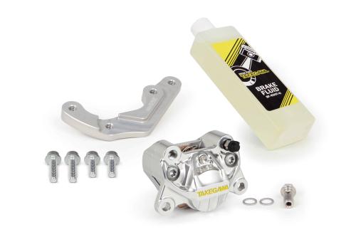 ■アルミビレット2POTキャリパーフロントセットは、SP武川製アルミビレット2POTキャリパーにフロントキャリパーブラケットキット、ブレーキフルード(200cc)が付属しています。