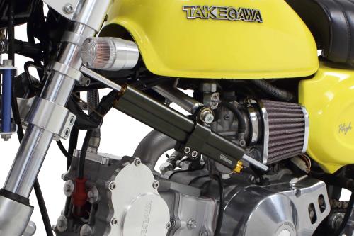 モンキー・ゴリラ SP武川製各フロントフォーク装着車を対象とし、SP武川製ステアリングダンパー(旧型ストローク125mm/06-01-0070、又は現行品ストローク120mm/06-01-0430)の取付けを可能とするステアリングダンパーステーキットが付属。