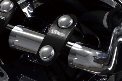配線やケーブル等の交換が必要なく、純正ハンドルクランプの位置からオフセット及びアップすることでステアリングハンドル位置を2パターンで変更できる“アジャストハンドルクランプ”