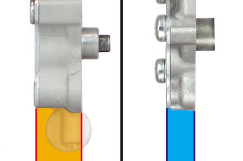 スーパーオイルポンプキット(リリーフバルブ機能付き/工具無し) オイルポンプボディーの厚み比較(左:SP武川製/右:純正)