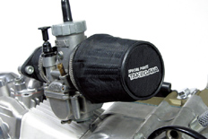 弊社製エアフィルターに取付けることで、更に防塵効果を高めることが出来るエアフィルターカバーです。精密なポリエステルメッシュをフィルターカバーに採用することで、フィルターへの泥、砂等の侵入をやわらげます。又、このフィルターカバーは装着しても吸入効果を大きく妨げることが無い為、キャブレターの再セッティングの必要がありません。 フィルターカバーのエンド部分には弊社ロゴがプリントされています。 弊社製対象エアフィルター :Type-1(ラウンドテーパー) エアフィルター対象品番 :03-01-100/03-01-101/03-01-103/03-01-104