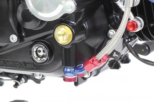 シリンダーヘッド側に流れるオイルラインをオイルエレメント経由に変更出来ます。