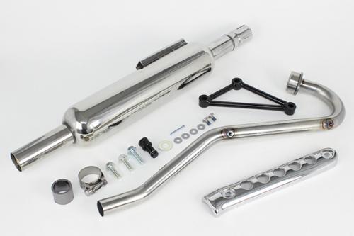 オールドスタイルのキャブトンサイレンサーをアップ形状に取りまわし、70'sのスクランブラタイプの造形美を再現しました。 特徴的なサイレンサー部の曲面の美しさや、ステンレス材を採用しポリッシュ仕上げを施すことで見た目にも美しく、雨天走行による腐食を抑える耐候性に優れたマフラーです。 エキゾーストパイプには専用のプロテクターを標準装備しております。 キャタライザー内蔵。 エキゾーストパイプガスケット付属。