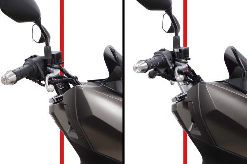配線やケーブル等の交換が必要なく、純正ハンドルクランプの位置からオフセット及びアップすることでステアリングハンドル位置を2パターンで変更できる“アジャストハンドルクランプ”