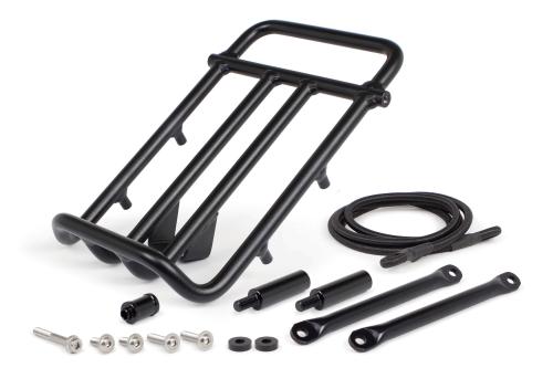 又、荷物の脱落を防止する為、下部に荷物止めとなる折り返し、ゴムネットやゴムバンド等を引っ掛ける左右の突起を採用するなど、実用性を重視した設計になっています。