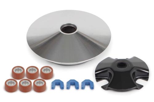 本製品を純正プーリーと交換することで、加速性能の向上と最高速アップが可能になります。 純正プーリーよりプーリー径を大径化するだけでなく、繰り返し行ったテスト開発により得たデータを元にオリジナル形状のローラーガイド、ランププレート、スライドピースを採用している為、低速からの安定した出力と最高速を実現しております。 各対象車種の純正マフラーにベストセッティングのウエイトローラー付属。 付属ウエイトローラー:6g×6個 プーリーボス挿入部には耐久性に優れるドライメタルを採用。 プーリーボスは純正を使用します。