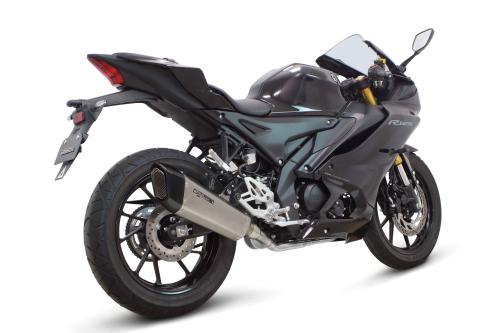 六角形のテーパー形状サイレンサーをベースに、シャープなカーボンマフラーエンドを採用した圧倒的な存在感の“ハイパースポーツマフラー”です。