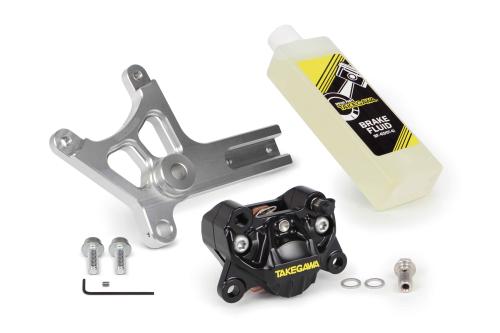 ■アルミビレット2POTキャリパーリアセットは、SP武川製アルミビレット2POTキャリパーにリアキャリパーブラケットキット、ブレーキフルード(200cc)が付属しています。