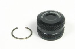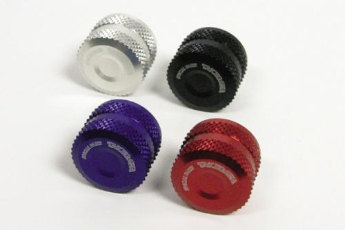 又、ノブの外周部にはローレット加工を施し、調整時に滑りにくくしています。アルミ削り出しアルマイト仕上げ。
