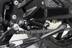 ノーマルステップ交換型のオールアルミ削り出しアジャスタブルステップキットです。 ライディングシューズの収まる幅を確保しながら大胆に削り込んだステップバーと、上下の変化量を増やし過ぎないオフセットポジション調整が可能です。 低ダメージ化を考慮したノーマル同様の可倒式や滑り止め形状に工夫を凝らすなど、機能の隅々まで追求しています。 ステップの固定位置の変更により、7ポジションから選択可能。 ライディングシューズのサイズや操作性に応じて選択することが出来ます。