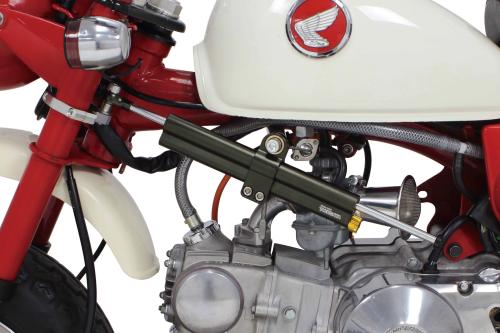 モンキー・ゴリラ・モンキー(FI) ノーマルフロントフォーク車を対象とし、SP武川製ステアリングダンパー(旧型ストローク125mm/06-01-0070、又は現行品ストローク120mm/06-01-0430)の取付けを可能とするステアリングダンパーステーキットが付属。フロントフォークに固定するダンパーステーに2ピース構造を採用することで、しっかりとホールドできます。