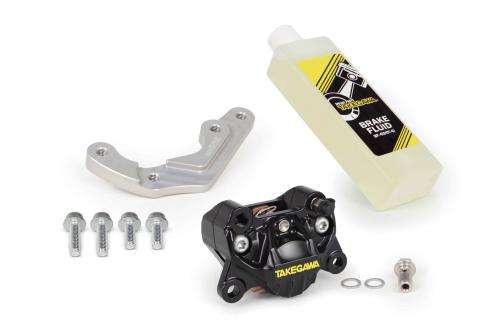 ■アルミビレット2POTキャリパーフロントセットは、SP武川製アルミビレット2POTキャリパーにフロントキャリパーブラケットキット、ブレーキフルード(200cc)が付属しています。