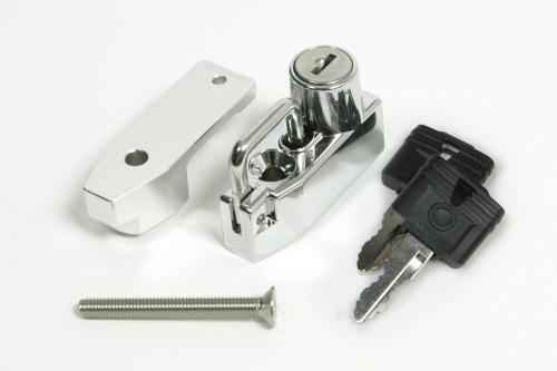 コンビニフック部に取付けることが出来るヘルメットホルダーです。コンビニフックとしての機能を損なわず、メットインスペースに収納出来ないヘルメット等、盗難防止ホルダーとして最適です。 ベース部はアルミを削り出した完成度の高い仕上がりにアルマイトを施しています。ホルダー部はメッキ ヘルメットホルダー専用のキー2本が付属。